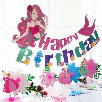 Paket içerisinde karton malzemeden üretilmiş Deniz Kızı Happy Birthday Dev Afiş 1,5 Metre bulunmaktadır